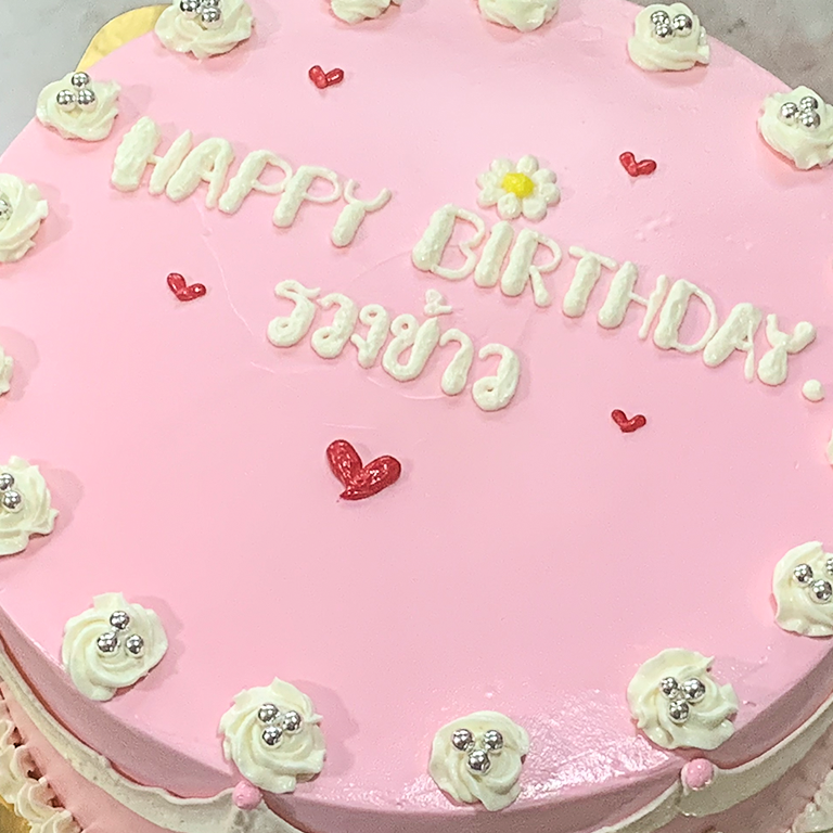 เค้กมินิมอล โทนชมพู ครีมล้อมรอบ เขียนชื่อตรงกลาง เรียบง…